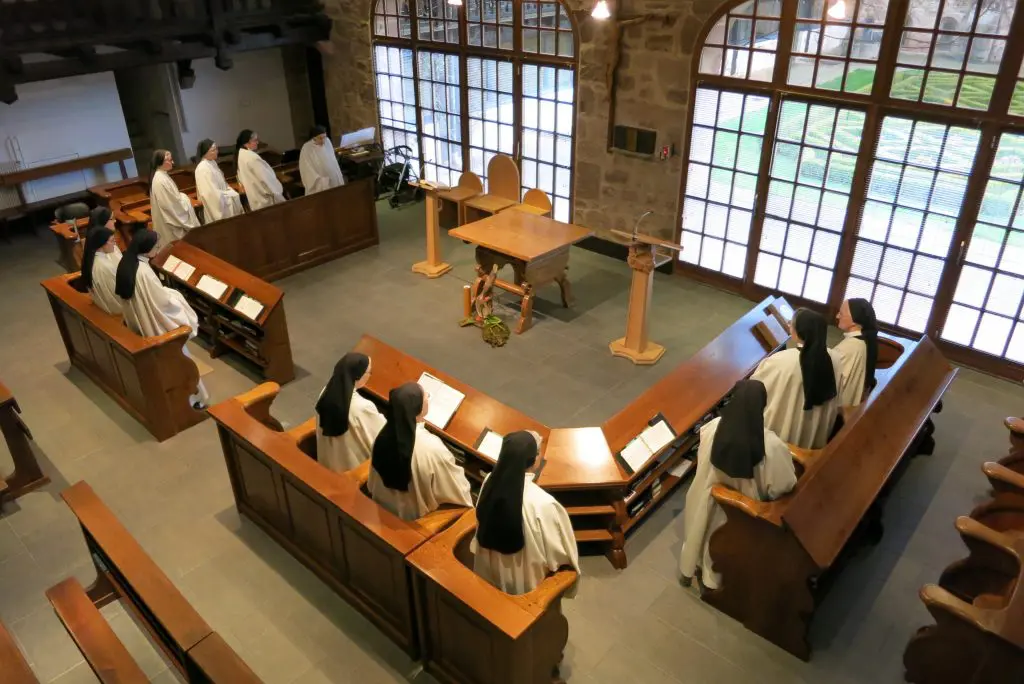 Les VEPRES sont l’action de grâce du soir. Leur dénomination découle du latin Vespera, qui signifie « le soir », justement. Elles durent une demi-heure et sont suivies d’un quart d’heure d’oraison silencieuse communautaire. Nous y célébrons le Christ, « Joyeuse lumière, Splendeur éternelle du Père », faisant monter notre prière vers le Père « comme un encens » et « nos mains comme l’offrande du soir ».